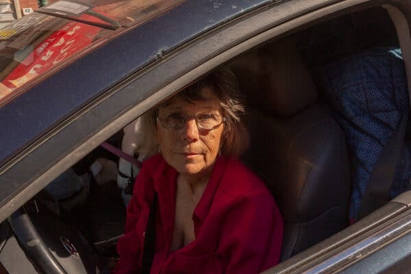 At night, the police mostly pass her by in her illegally parked car with its expired plates in the heart of midtown. “They’ve been pretty nice,” she said. “I explain everything, that my husband’s trapped. They say, ‘Oh my God.’ One of them gave me $20.”
