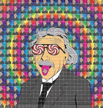 On May 6th in Oswego, it was 50F (10 °C). According to the weather outlook on the 8th and 9th of May, the temperatures were going to leap into summer-time highs! Since the weather was going to be shorts-and-t-shirt, Diane and I decided to find that little container in the freezer. Inside a plastic bottle and wrapped in aluminium foil were a couple of hits of LSD.