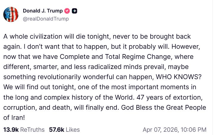 There has never been a US President who has made such a statement. This is either bluster as a negotiating technique or pure insanity or a heaping serving of BOTH.