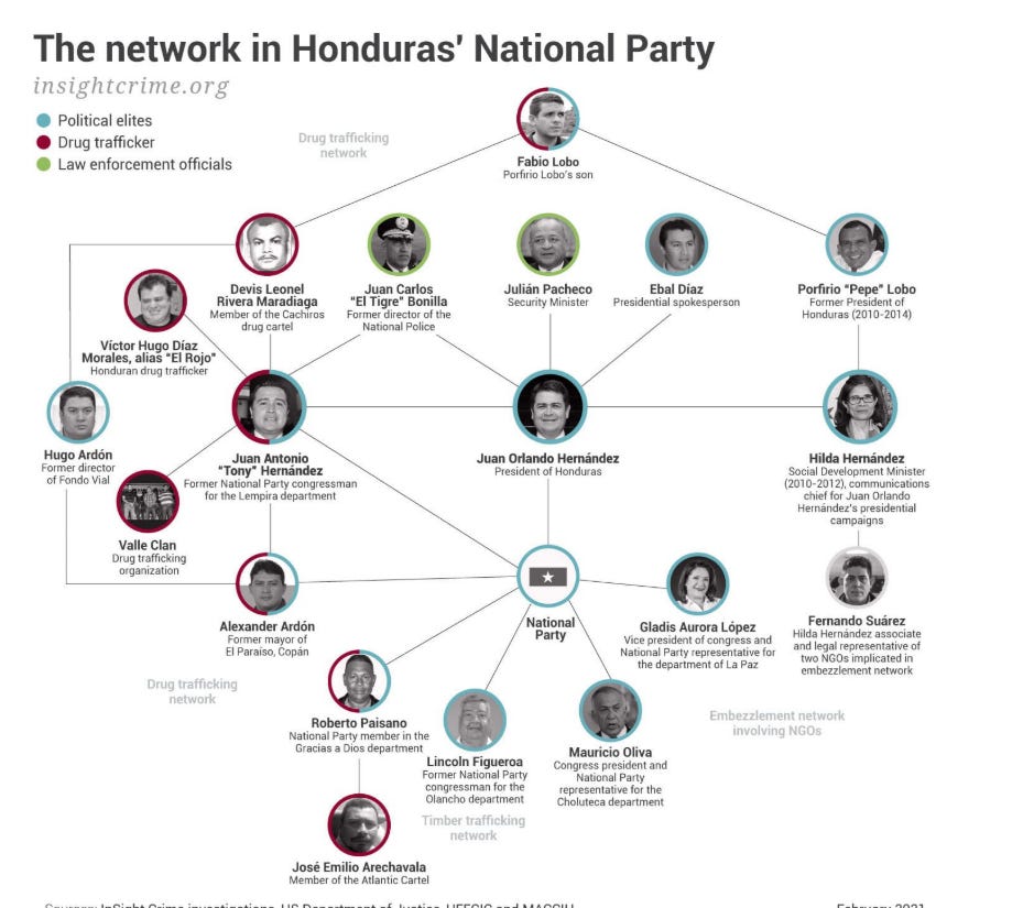HERNÁNDEZ played a leadership role in a violent, state-sponsored drug trafficking conspiracy. Over 15 years, HERNÁNDEZ manufactured and distributed at least 185,000 kilograms of cocaine that was imported into the United States. HERNÁNDEZ commanded heavily armed members of the Honduran military and Honduran National Police; he sold machineguns and ammunition to drug traffickers, some of which he obtained from the Honduran military; he controlled cocaine laboratories in Colombia and Honduras; he secured millions of dollars of drug proceeds for Honduras’s National Party campaigns in connection with presidential elections in 2009, 2013, and 2017; and he helped cause at least two murders.