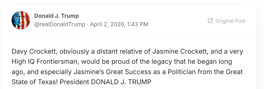 Take, for example, #1 , this insane Truth Social post from the last 24 hours.